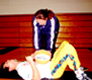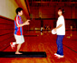 左:マンツーマンでの基礎トレーニング。
